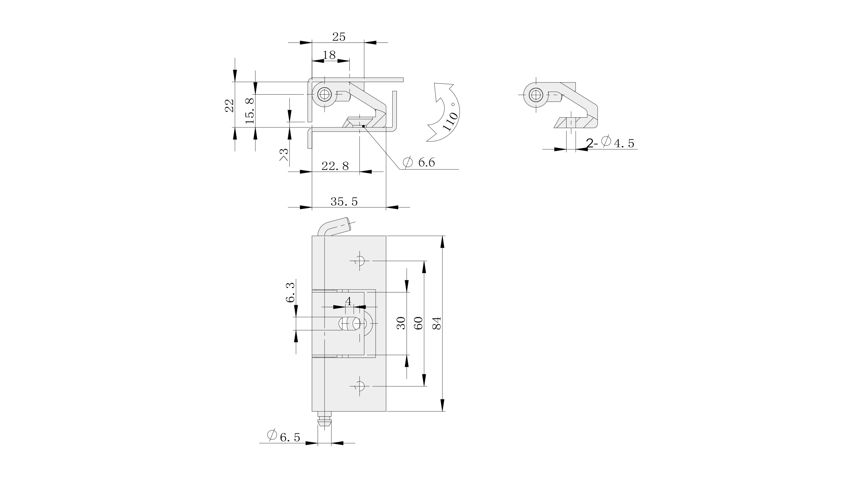 Material: Zinc alloy hinge, carbon steel pin, PA bushing