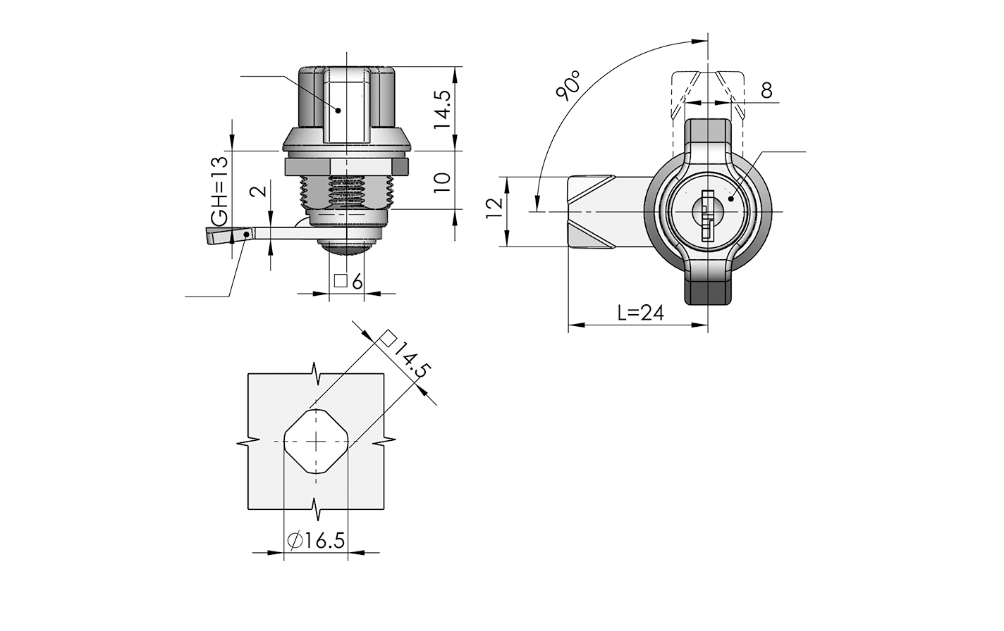 Surface Treatment: Spray coating (black polished finish) for base and handle; chrome-plated lock cylinder