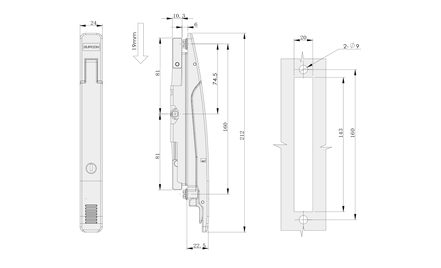 Material: Zinc alloy base, handle, slider, guide; stainless steel connecting rod