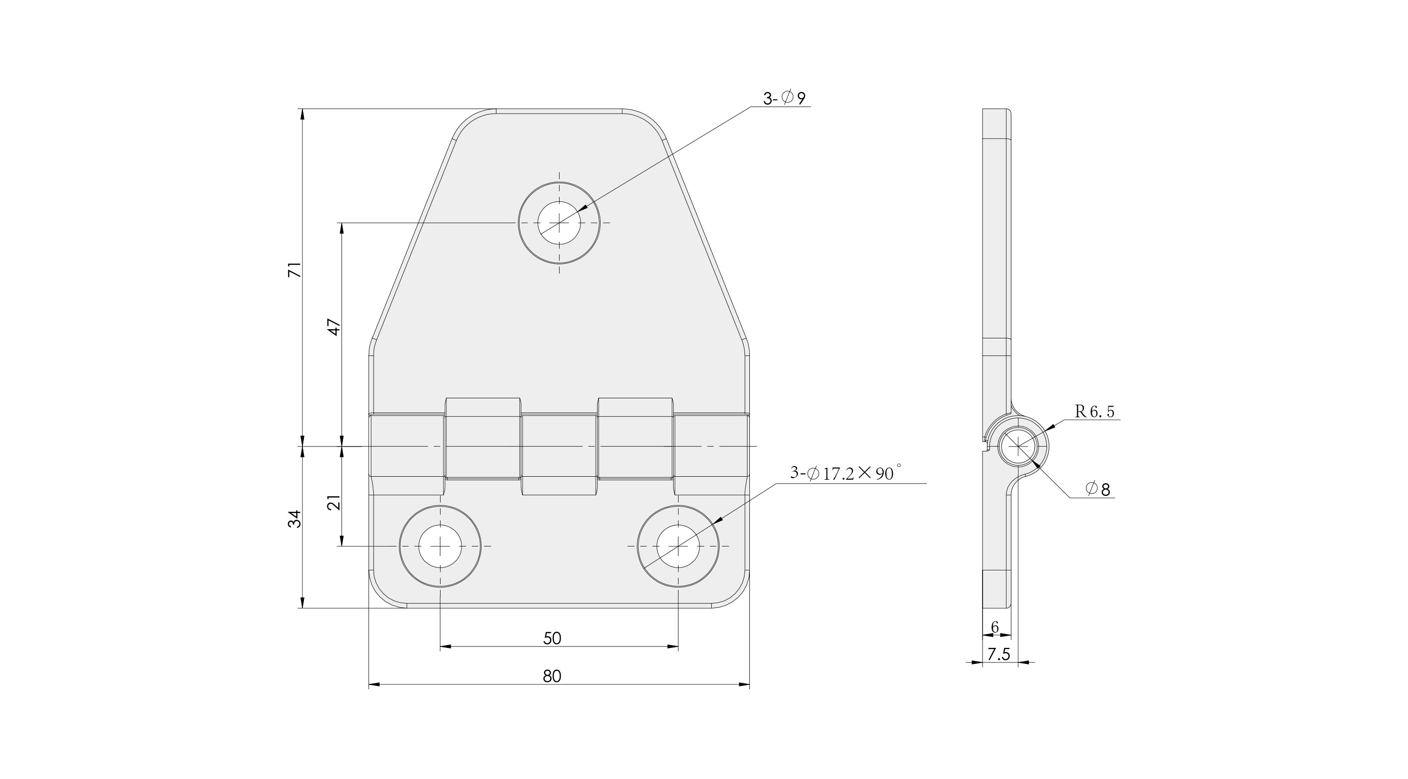 Material: PA (black) hinge, steel rotating shaft
