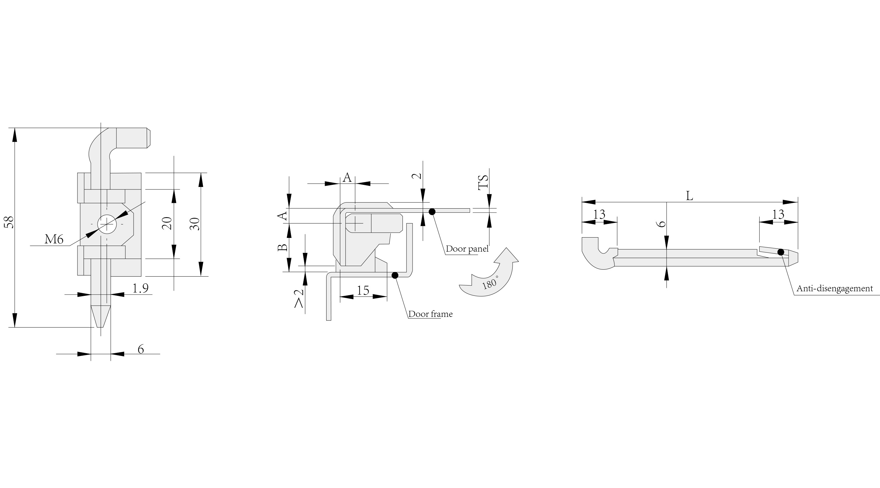 Material: Zinc alloy hinge, carbon steel pin