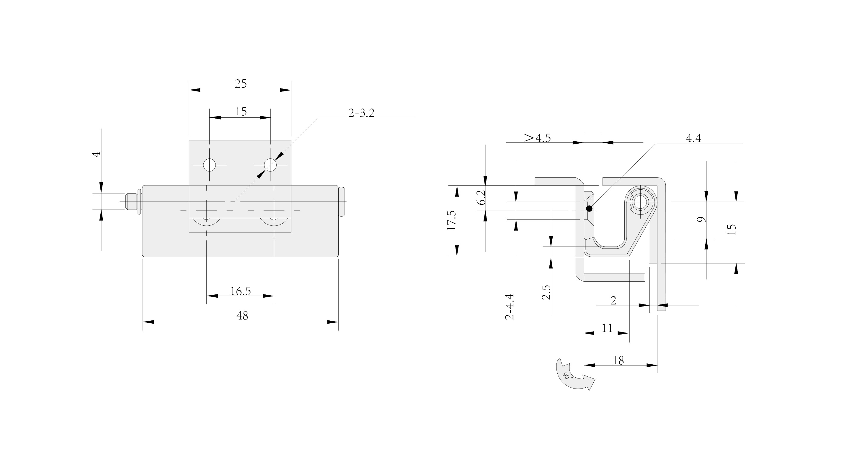 Structure Description: Maximum opening angle is 90°