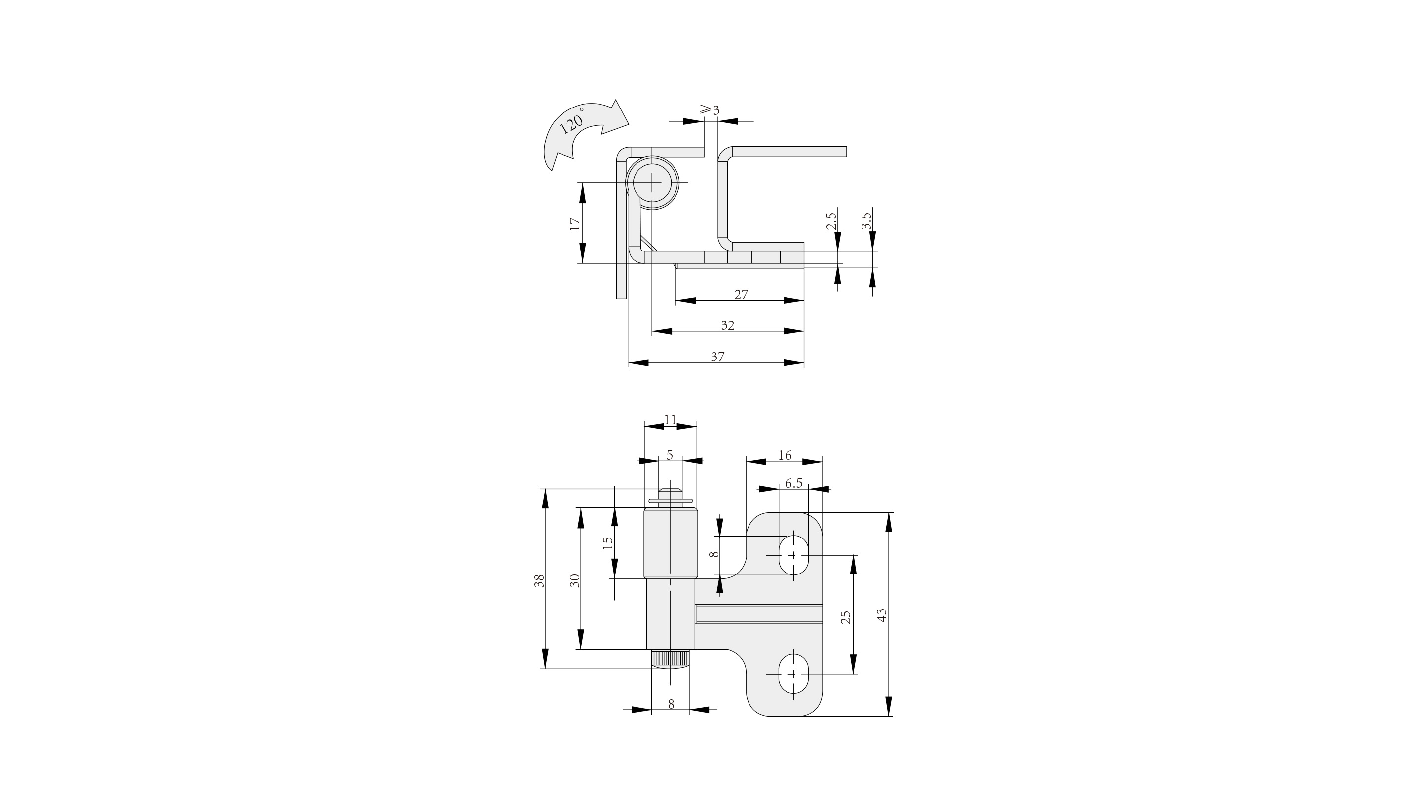 Surface Treatment: Spray-painted black fixed hinge, white zinc-plated movable hinge body, black spray-painted rotating shaft