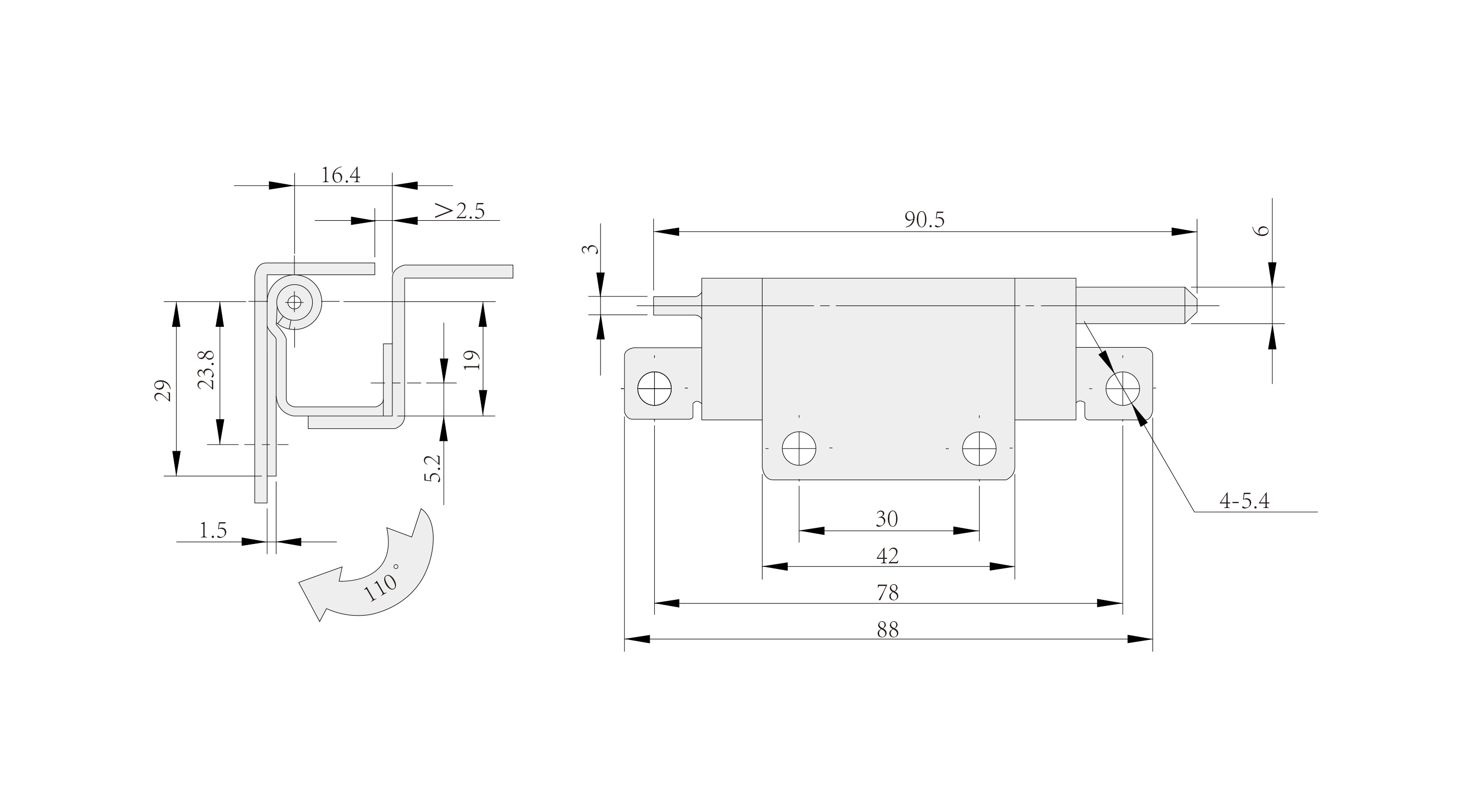 Structure Description: Maximum opening angle 110°