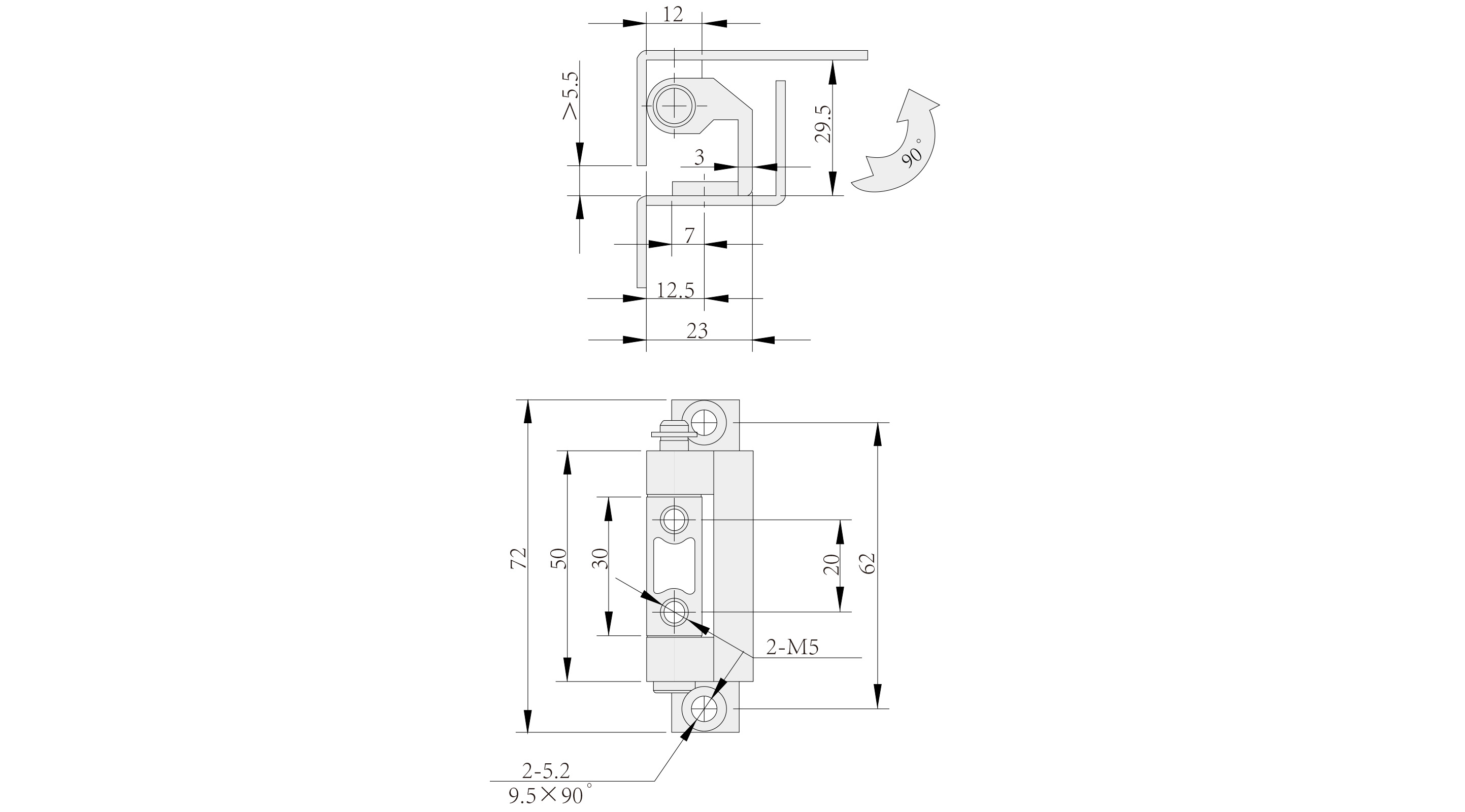 Structure Description: Maximum opening angle 90°