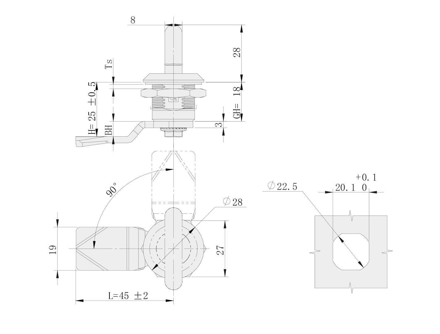 Surface Treatment: Base, lock core, handle: Bright chrome plating