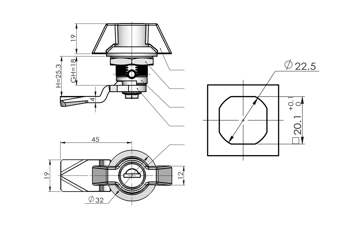 Material: Base, lock core, handle: Zinc alloy; Lock plunger: Stainless steel