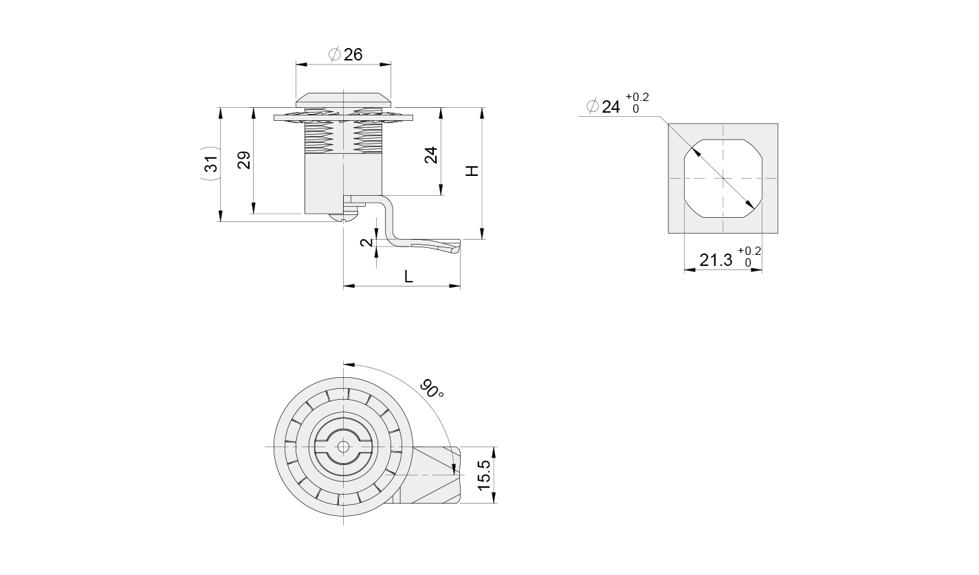 Surface Treatment: Handle, base: Black matte spray coating; Lock plunger: Color zinc plating