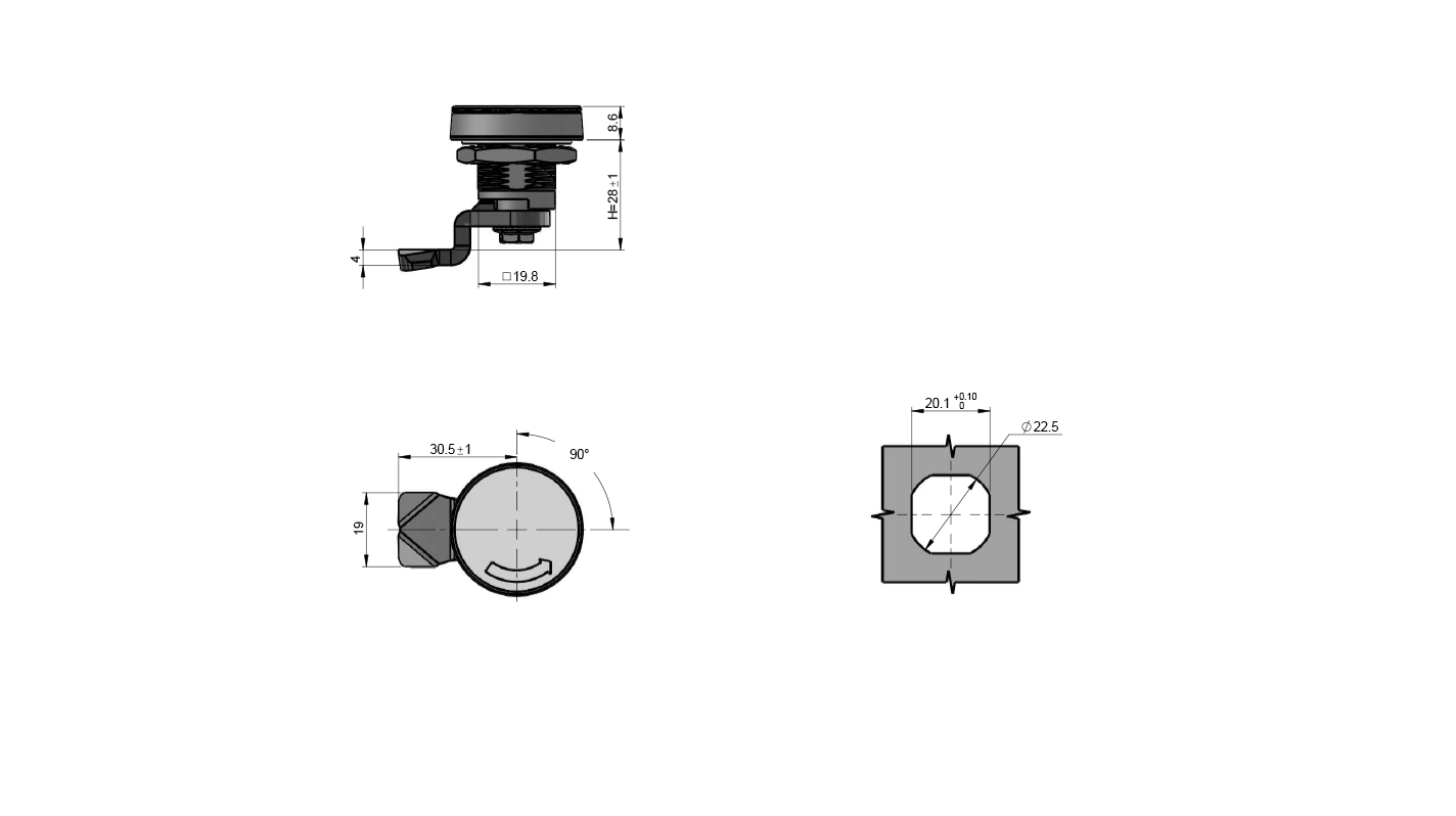 Remarks: 8mm triangular lock cylinder can be equipped with a tool-type key