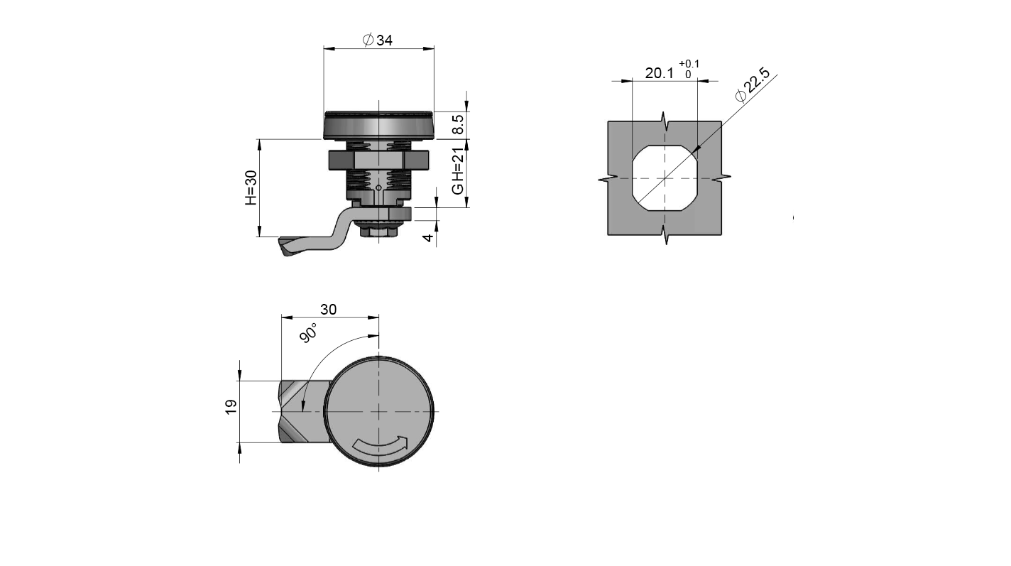 Surface treatment: Chrome plating on the base, cover plate, lock cylinder and key