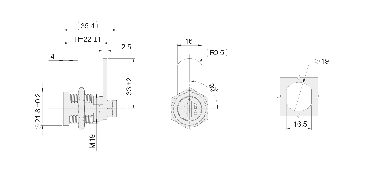 Structure description: The lock core rotates 90° to open, driving the pin to achieve opening or locking