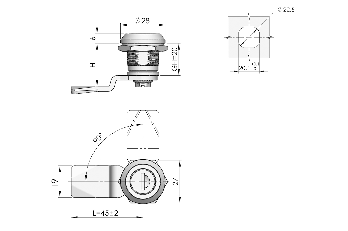 Structure Description: Rotate the lock cylinder 90° to open or lock