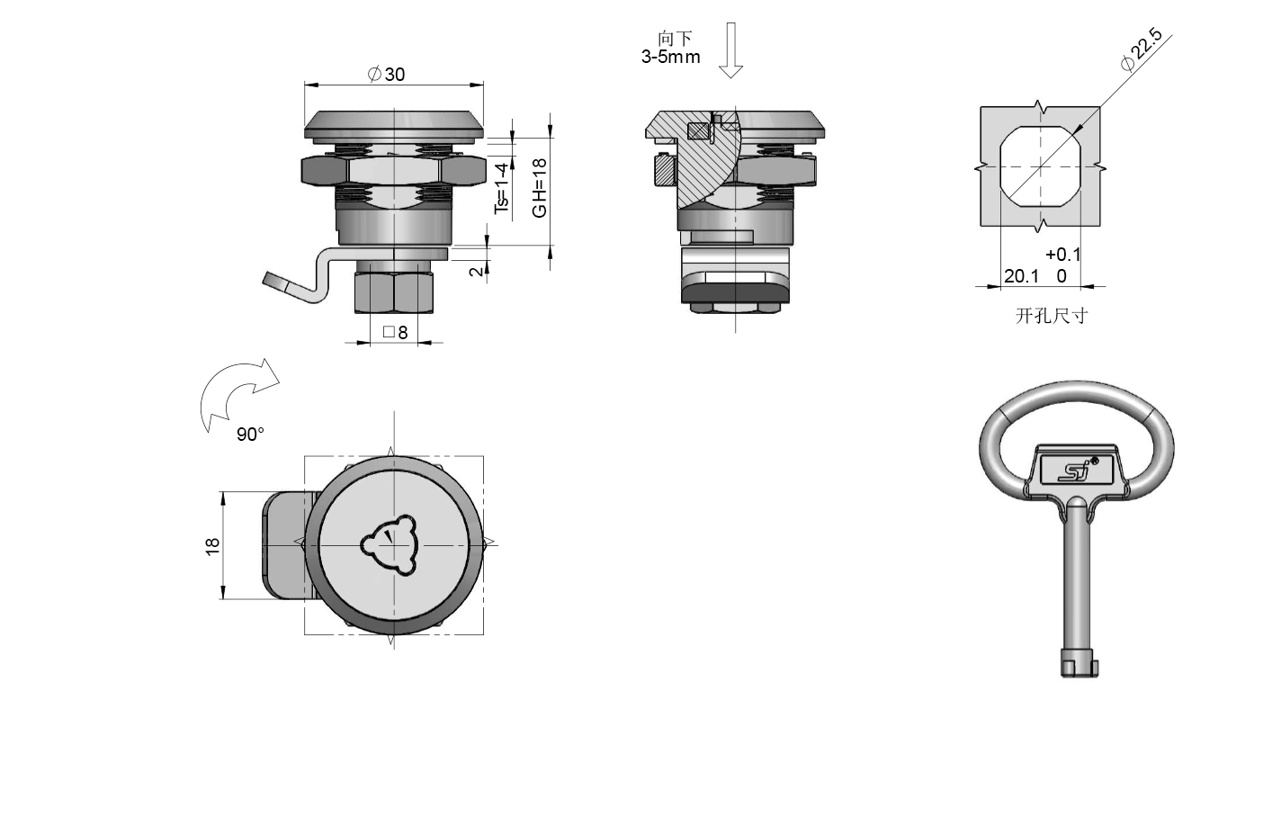 Material: Zinc alloy base, lock cylinder, cap; carbon steel pin, key