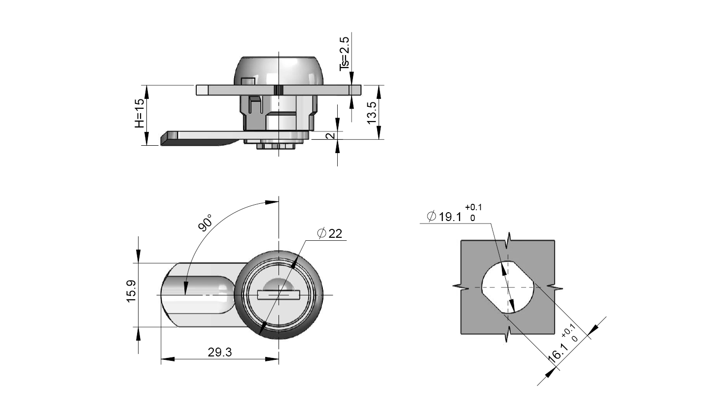 Material: PC (black) base; zinc alloy lock core; steel pin