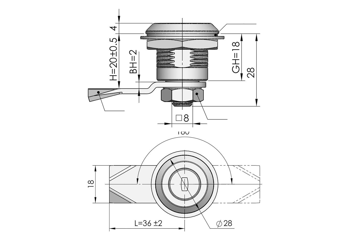 Structure Description: Rotate 180° to achieve opening or locking