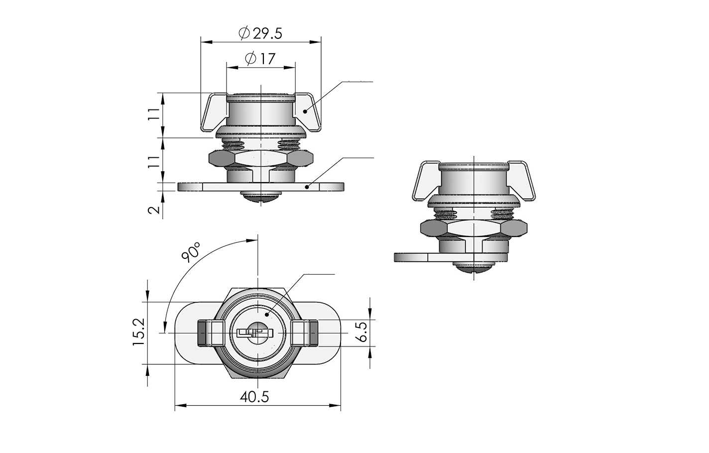Material: Zinc alloy (base, lock cylinder); carbon steel pin