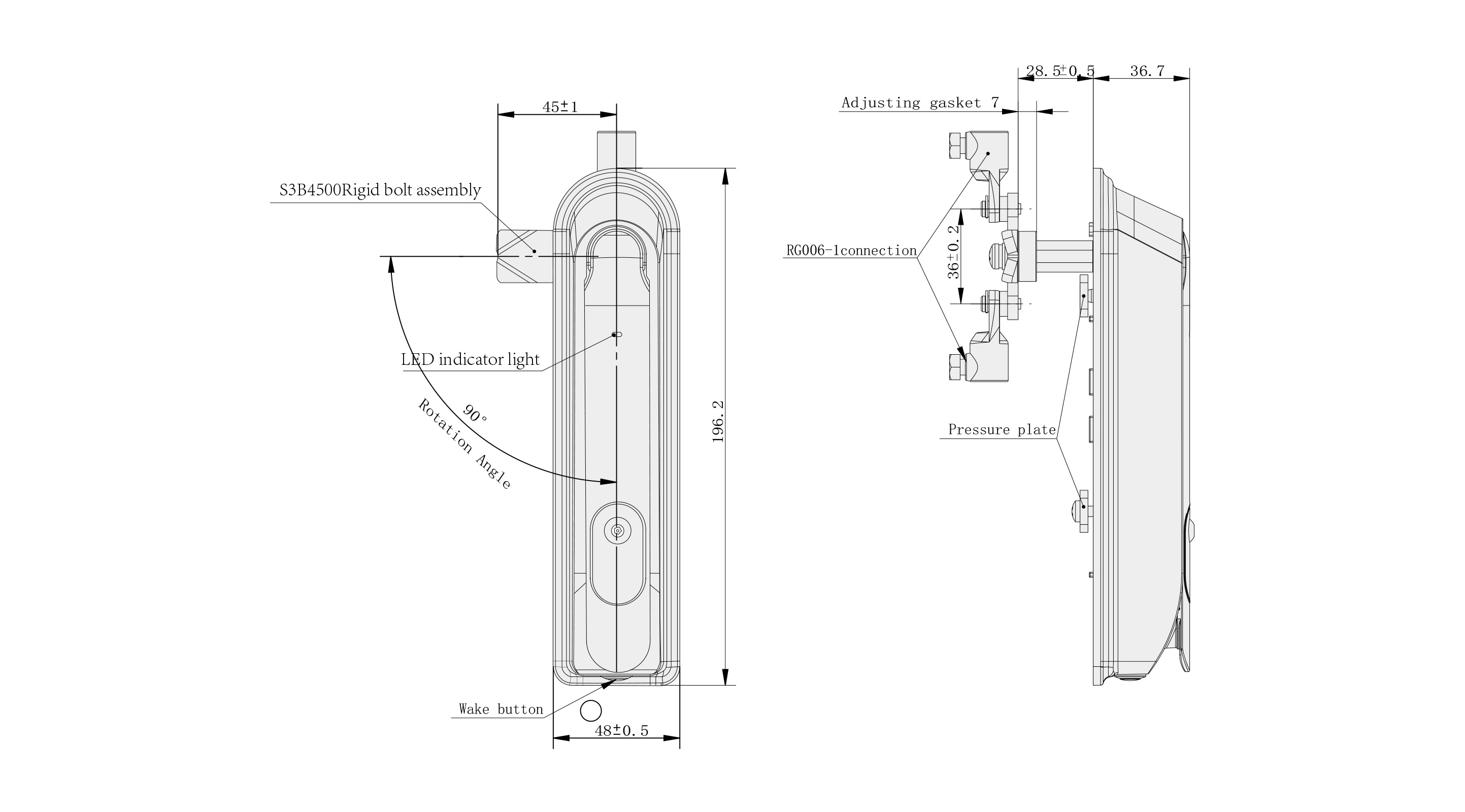 Technical Parameters:Working Voltage: DC12VWorking Current: ≤0.3AOperating Temperature: -20~60℃Protection Class: IP65