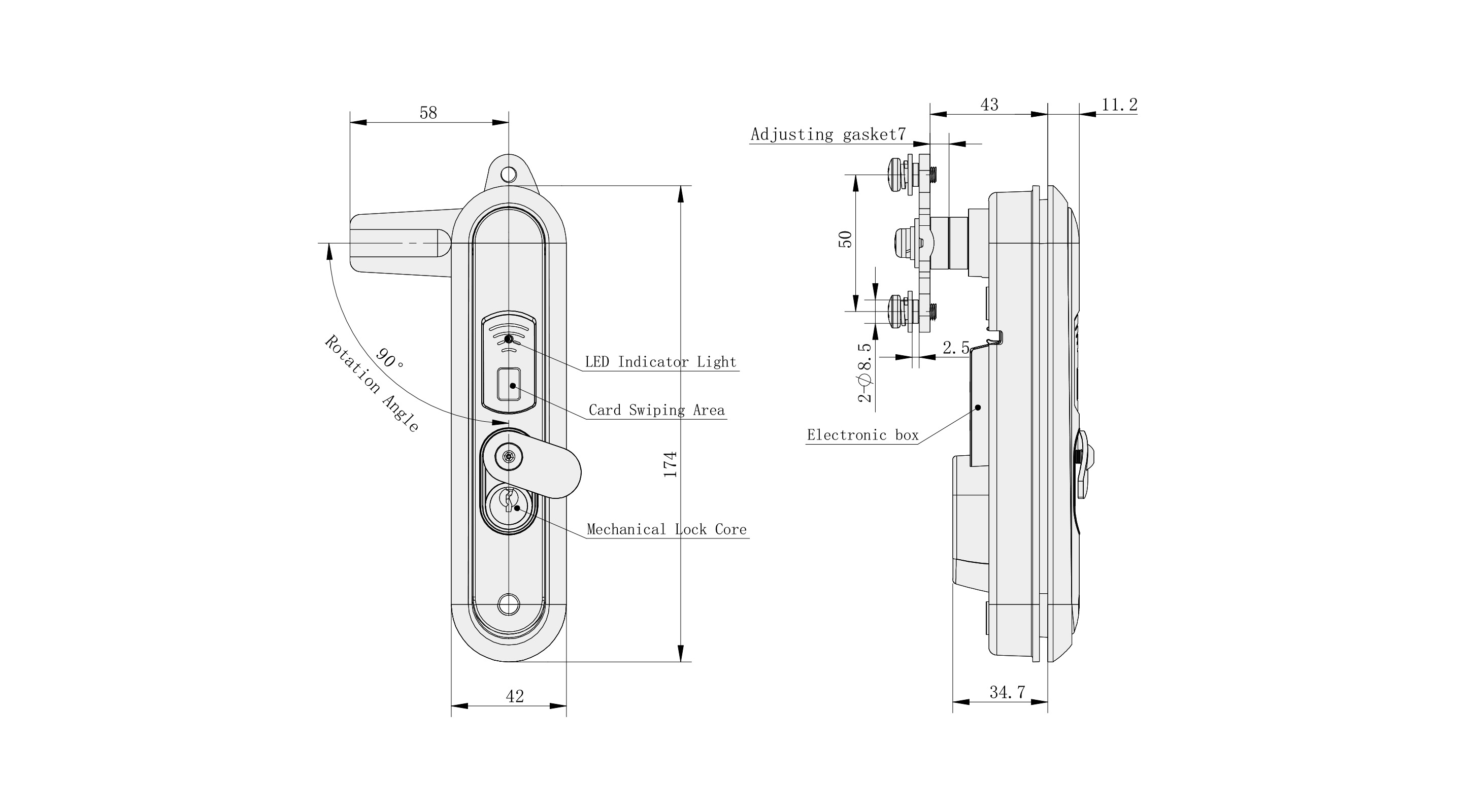 Unlocking Methods:Card Unlocking (IC Card), 485 UnlockingEmergency Unlocking (Mechanical Key)