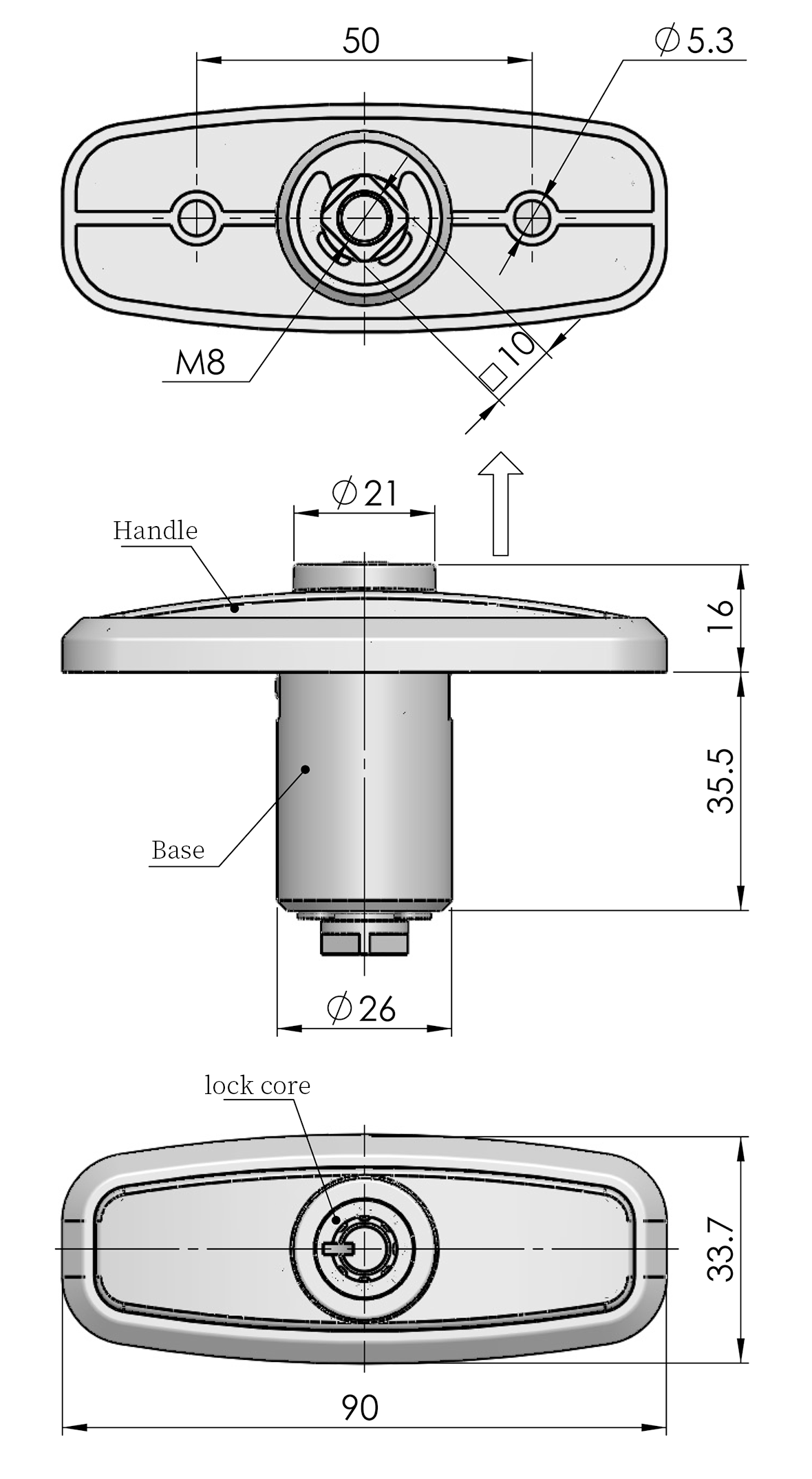 Structure Description:Rotate upward 180° to open; the handle locks automatically after useAfter unlocking, the handle can rotate 360°