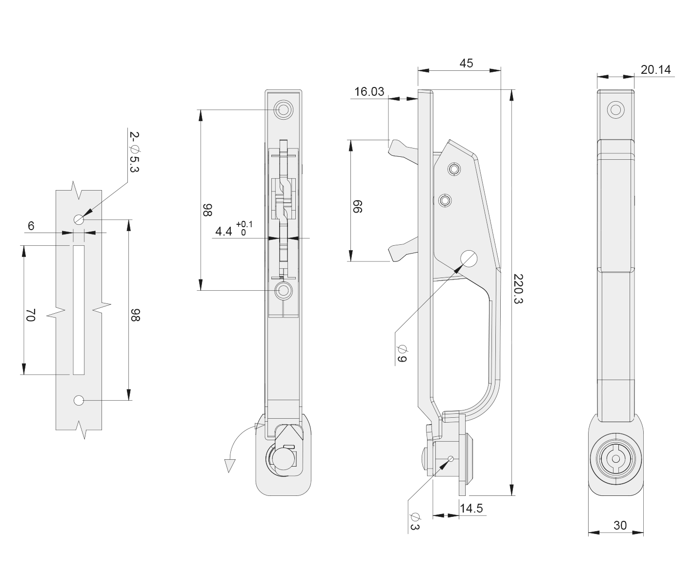 Structure Description: The handle is equipped with a spring and has a linkage function (the actuator diagram is for reference only; usually designed by the customer)