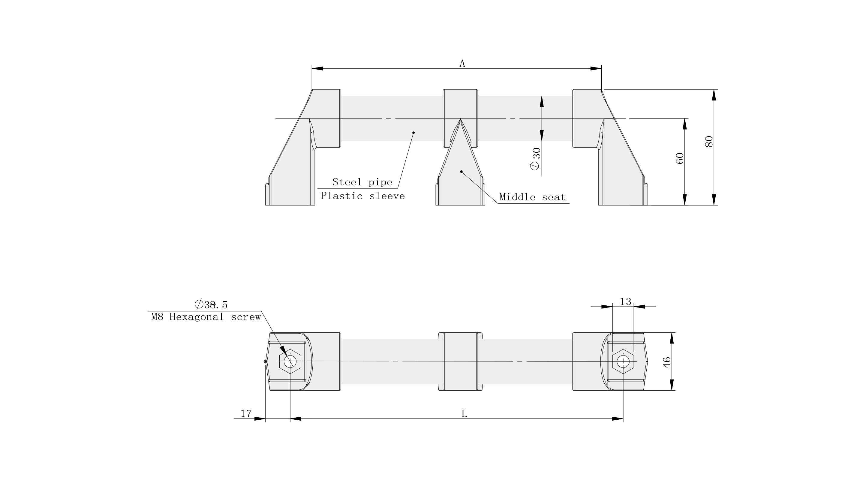 Material: Rubber sleeve; galvanized steel pipe; black PA fixing base