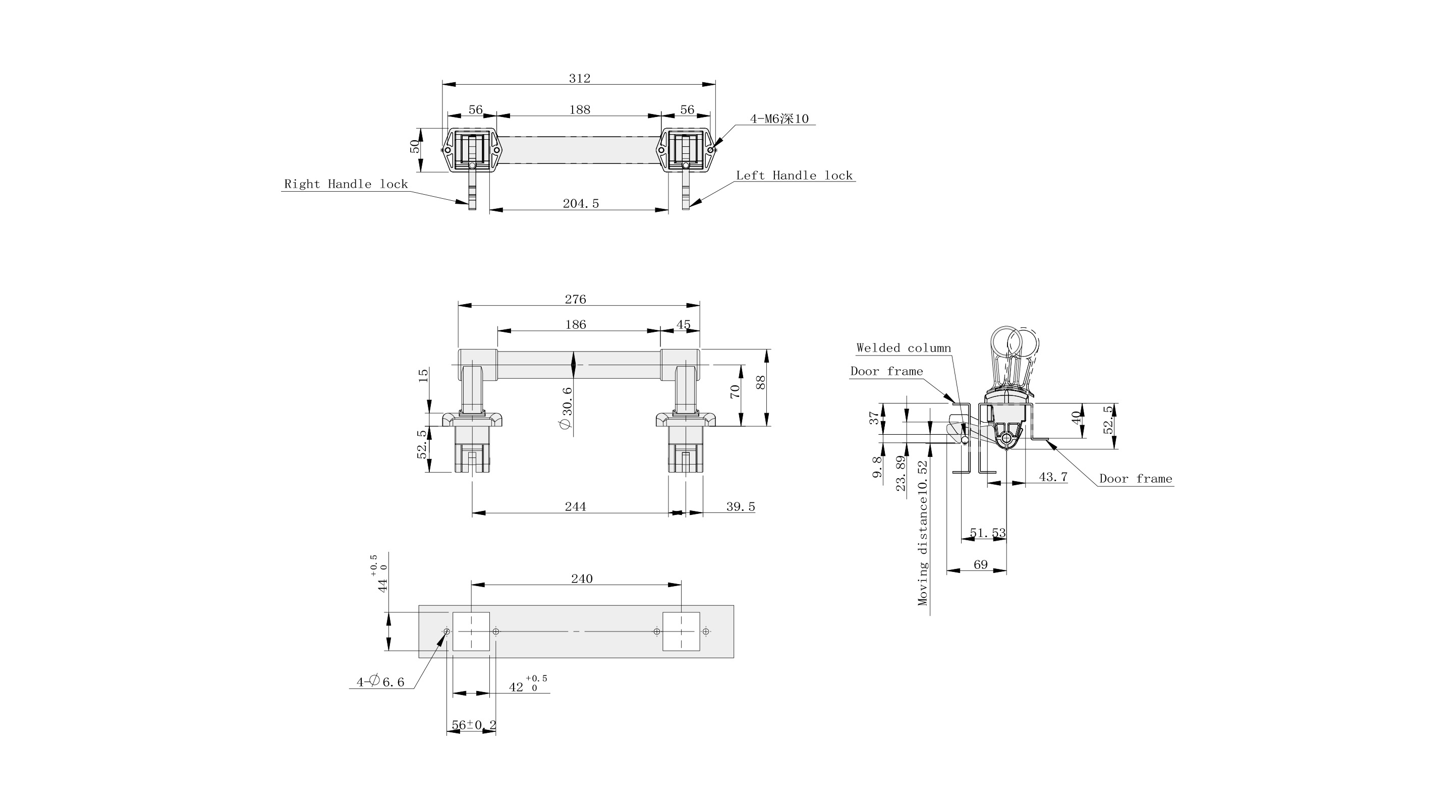 Structure Description: Swing the handle to drive the lock hook to lock; the installation positions of the left and right hand lock hooks are different