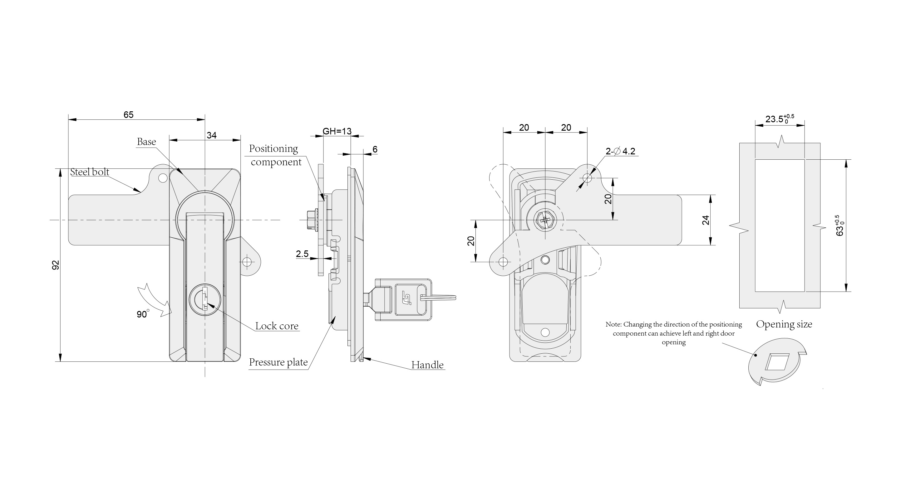 Structure Description: Lift the handle upward to open; rotate 90° to achieve locking