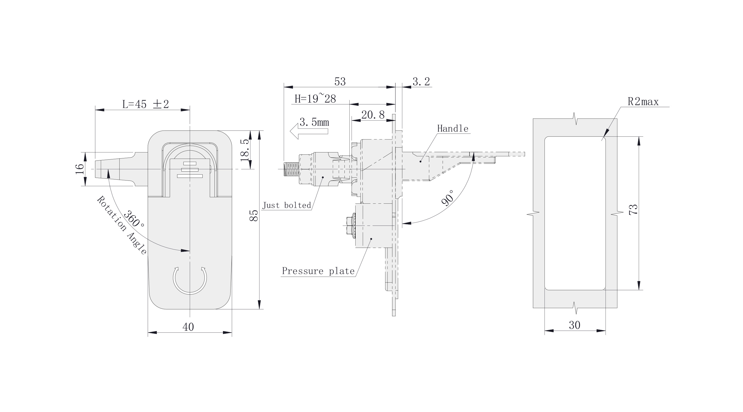 Structure Description: Fast opening and closing, convenient and quick; adjustable screw can adapt to various stop opening ranges; has a buffer function