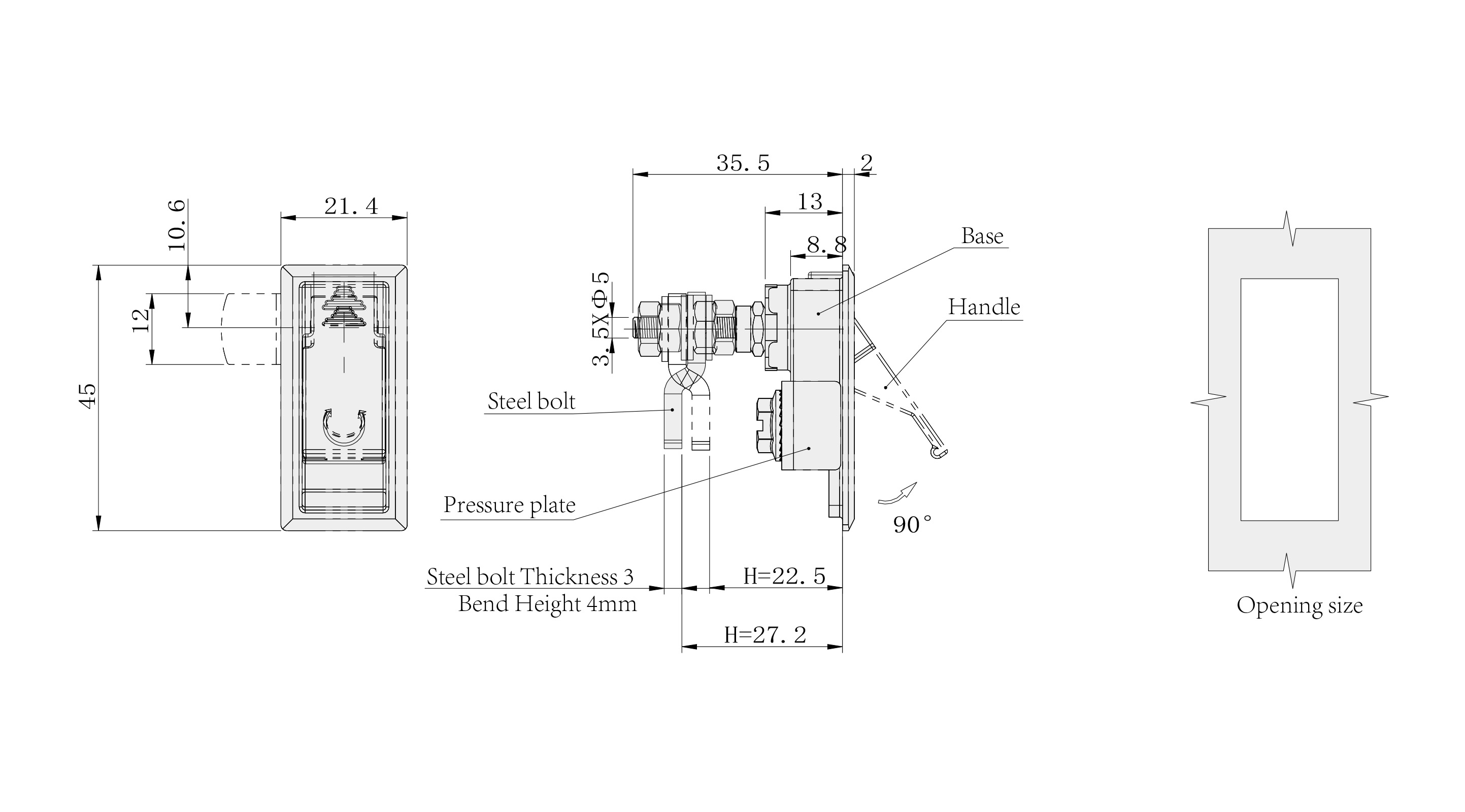 Structure Description: Fast opening and closing, convenient and quick to install; adjustable screw can adapt to various stop opening ranges; has a buffer function