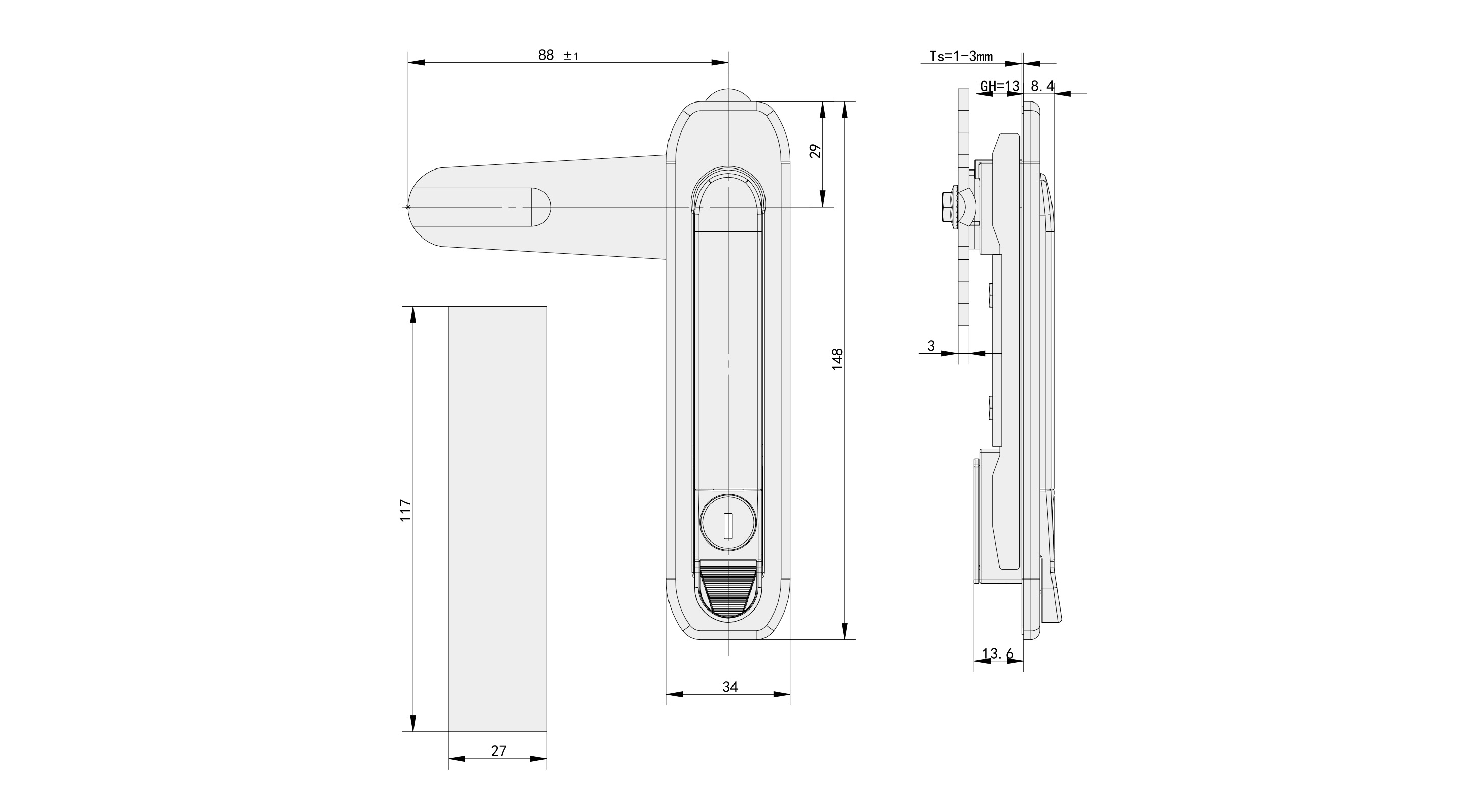 Structure Description: Fast opening and closing, convenient and quick to install; replacing the steel pressure plate can achieve single-point and three-point locking functions