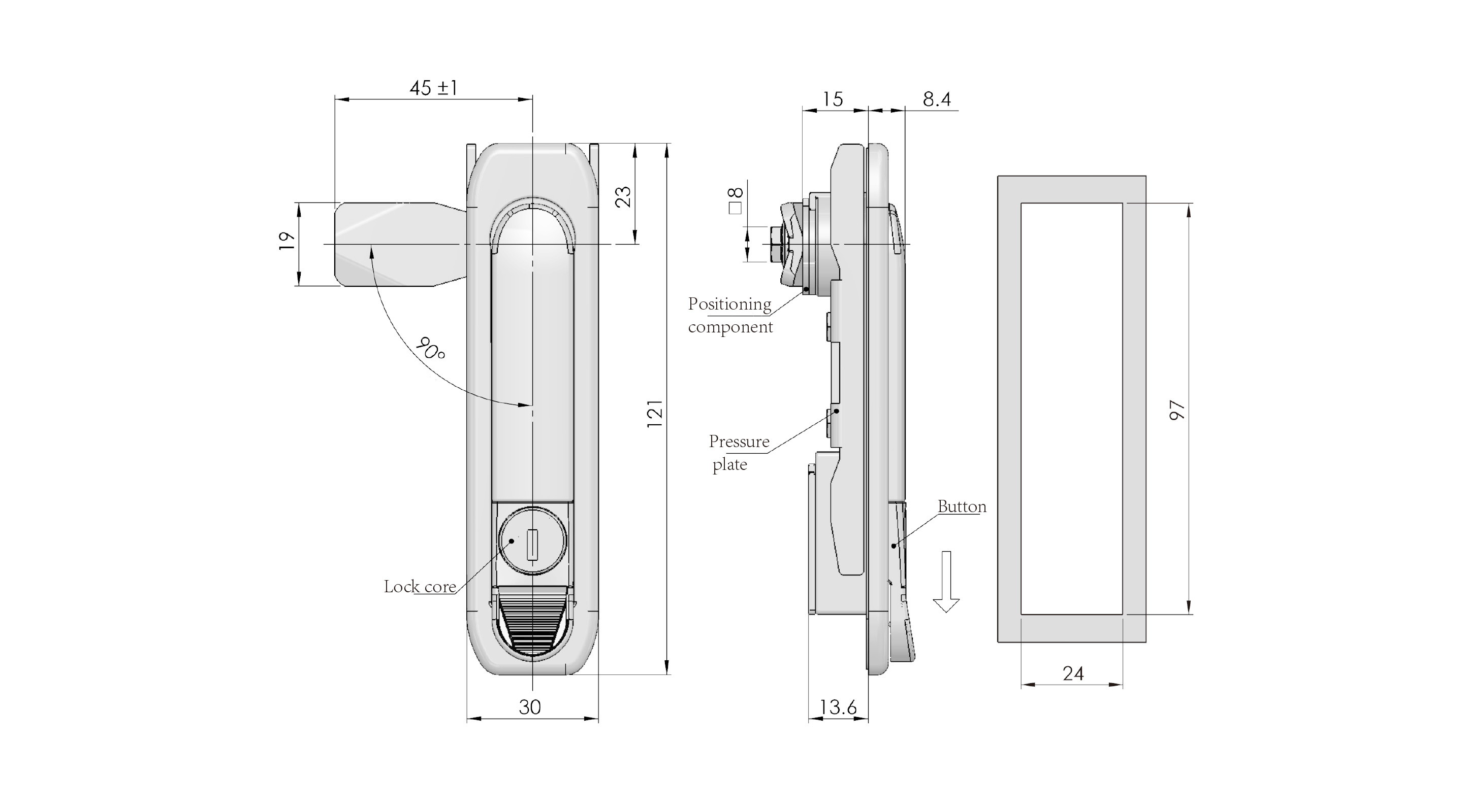Structure Description: Fast opening and closing, convenient and quick to install; replacing the steel pressure plate can achieve single-point and three-point locking functions