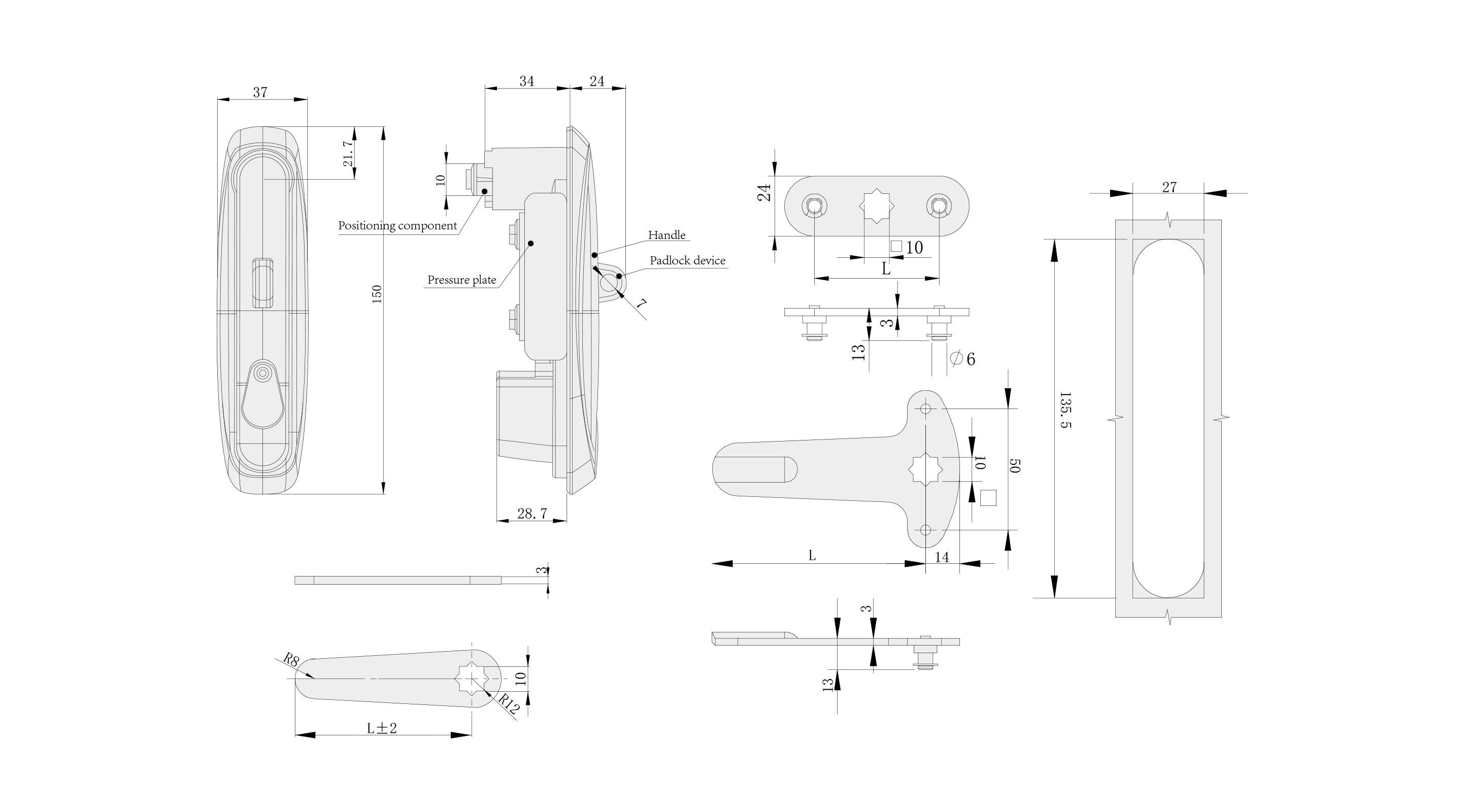 Structure Description: Fast opening and closing, convenient and quick to install; replacing the steel pressure plate can achieve single-point and three-point locking functions