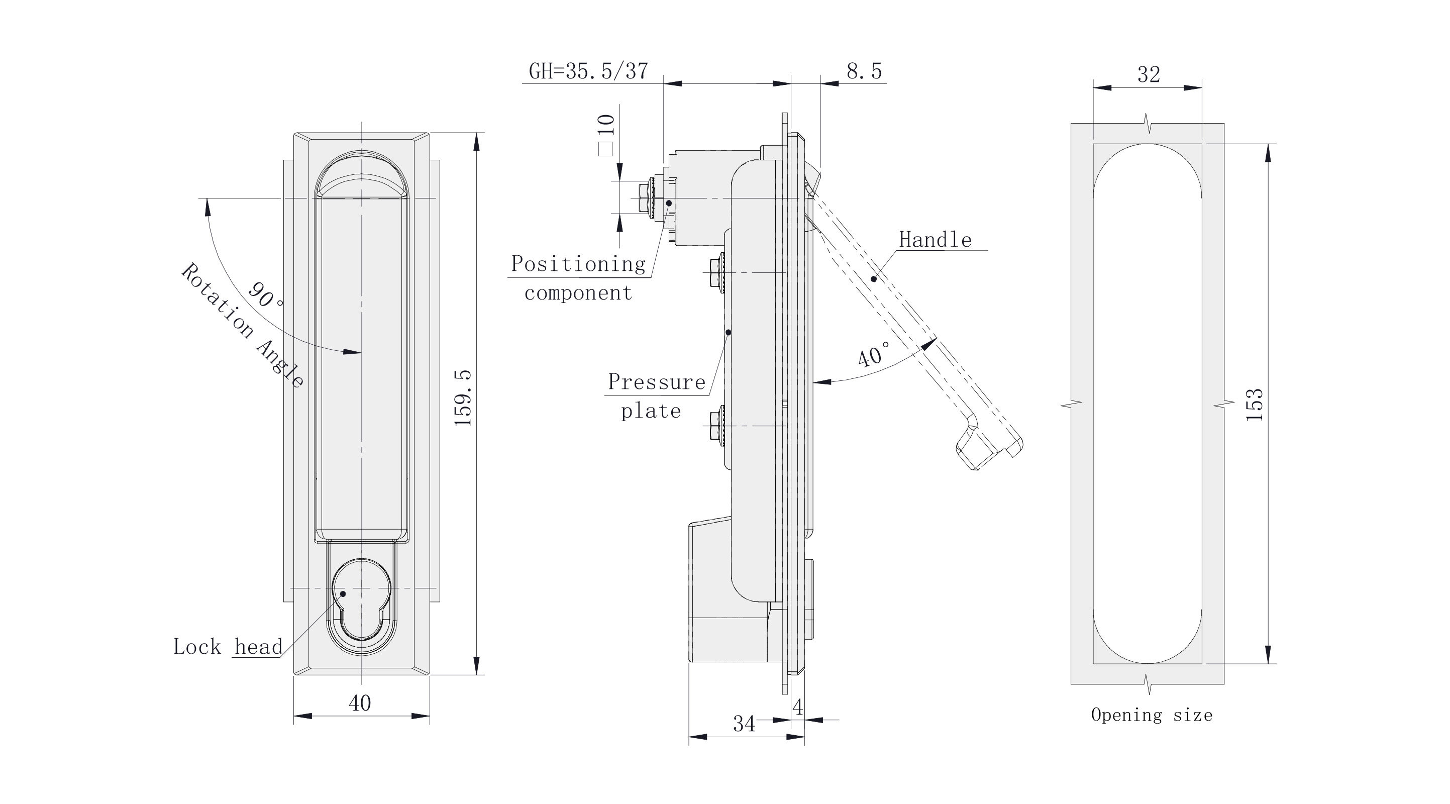 Structure Description: Fast opening and closing, convenient and quick to install; replacing the steel pressure plate can achieve single-point and three-point locking functions