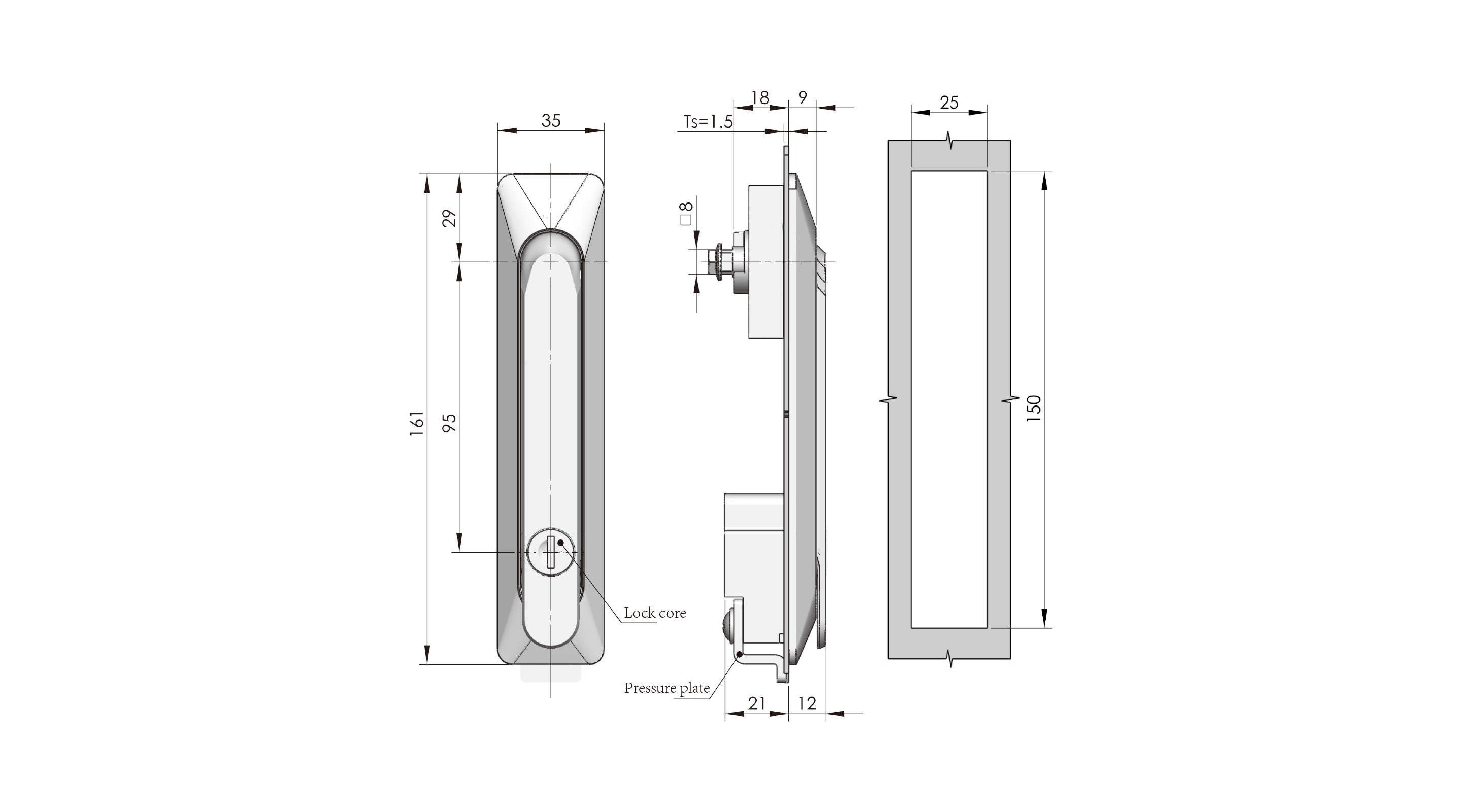 Structure Description: Rotate the handle 90° to open and lock; adjust the direction of the transmission buckle to switch the opening direction