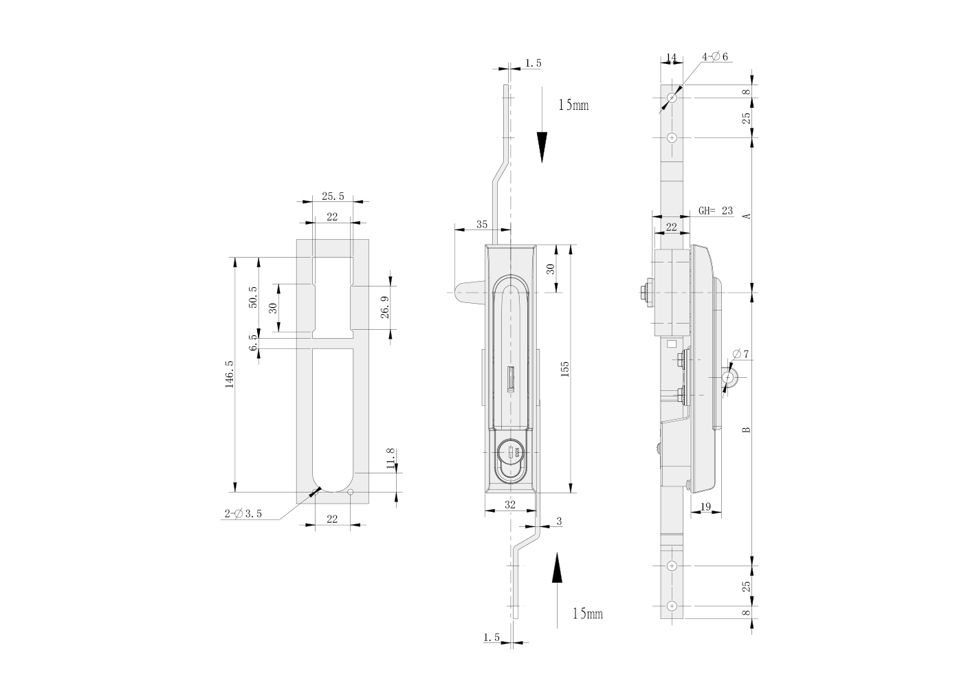 Structure Description: Rotate the handle to open and close the door panel